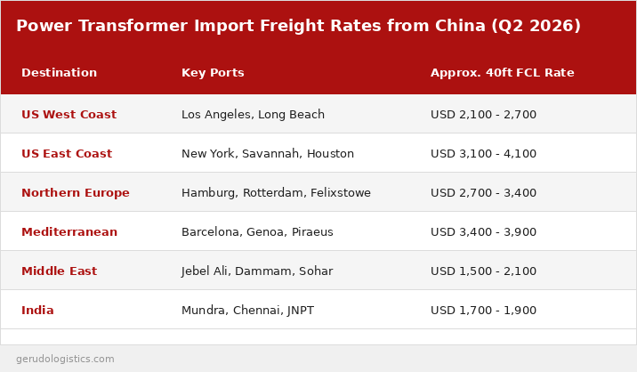 The ocean freight component is typically 15% to 25% of the total landed cost for high-value transformer cargo. Import duties often represent a larger share of the total than the freight itself.