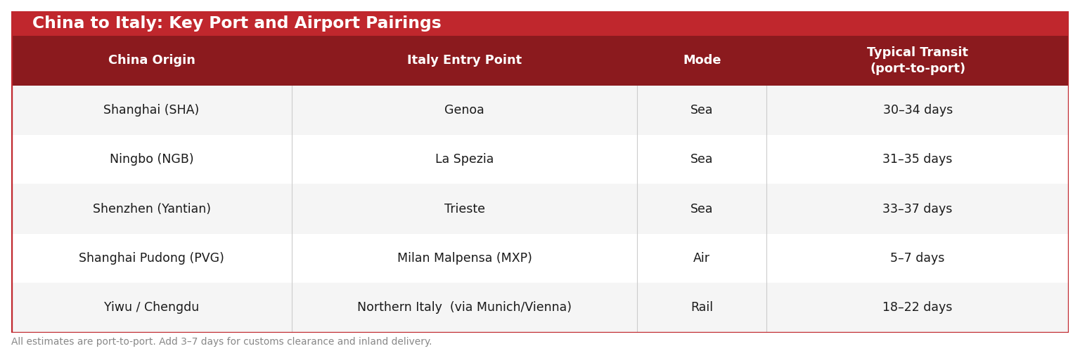 China to Italy: Key Port and Airport Pairings