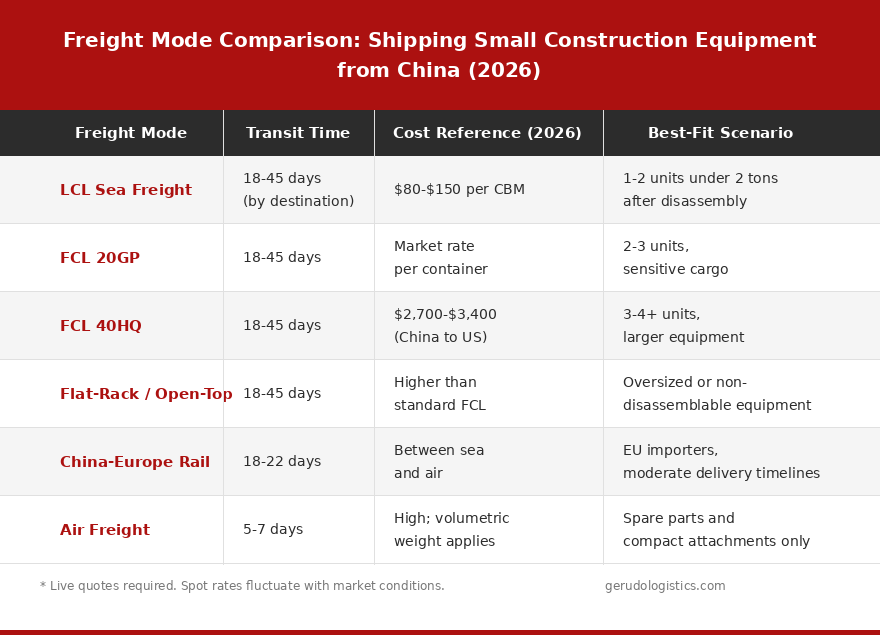 Shipping Small Construction Equipment from China: Modes, Costs, and Market Requirements